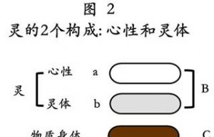 灵由心性和灵体组成。心性 (a) 是较高的、占主导地位的部分,因此是人本体;灵体 (b) 是较低的部分,是从心性衍生出来的,在形态和性质上与心性相似。 心性是本初的机体,灵体由心性形成,是心性在灵性世界中的感官和行动的用具。它们合在一起,披上物质身体的外衣。 在创造的秩序里居首位,由纯粹属灵物质构成…