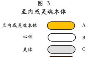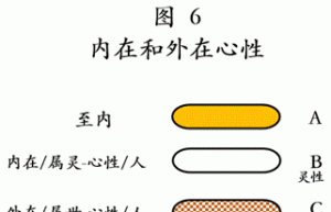 这里心性划分为两个层面——内在或属灵心性B,以及外在或属世心性C。 灵体D虽然分别画出,却与外在心性结合紧密,史公著作一般都是把它们合在一起的。 内在心性是对主之爱和对邻人之爱的首要与特别居所,而外在心性则是对己之爱和对世界之爱的居所。(《圣爱与圣智》396;DP 324;TCR 401, 402;…