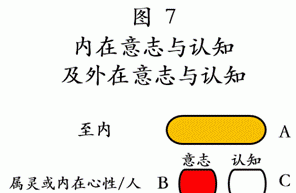 内在意志和认知B和C归于属灵心性,外在意志和认知D和E归于属世心性,如图7所示。 外在意志和认知可以与内在的二者结合,并与其和谐行动,或者与其分离并与之作对。 在顺应秩序的状态下,外在意志和认知与内在二者达成一致与合作,并与其结合,从而构成了合一的意志和认知。 对恶者来说,他们属灵的意志和认知虽然从…