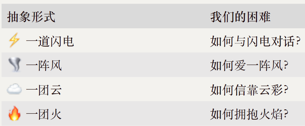 想想看,如果神以这些抽象形式出现,我们能建立关系吗?