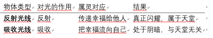 “他们就像是吸收而非反射光线的物体,在光中虽然显现出来、闪耀着,但实际上却处于一片阴暗之中,完全不具闪耀之光。因此,这样的人会被从天使的团契中剥离,成为与天堂毫无关联之人。”