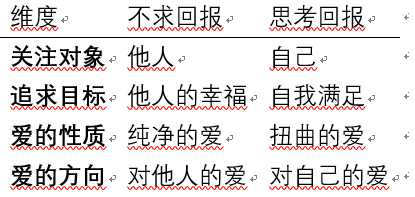 “因为在实际获得回报的同时,思考回报会使那份爱失去纯净性并变得扭曲。这是因为此时他们关注的是自己,而非他人,追求的是自我满足而非他人的幸福;除非他人的幸福能够增加他们自身的幸福感。”