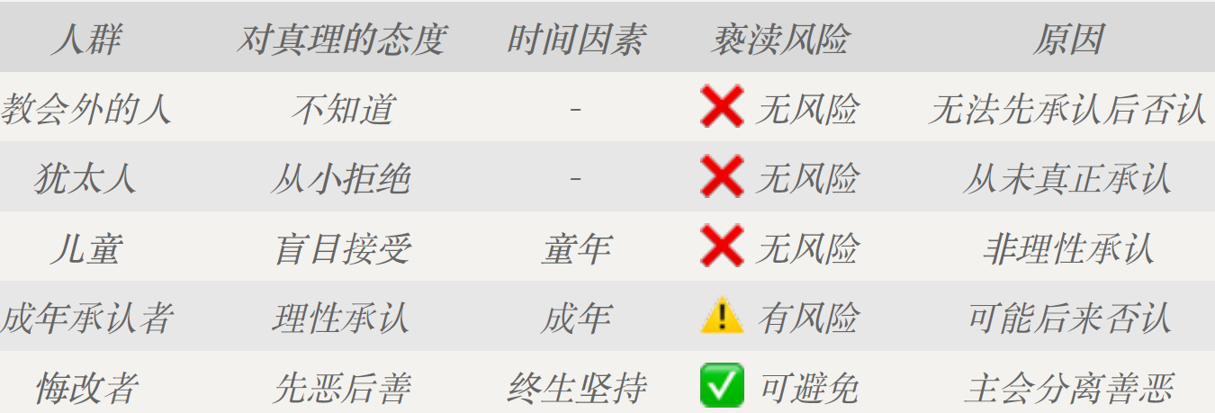 悔改者|先恶后善|终生坚持|✅ 可避免|主会分离善恶